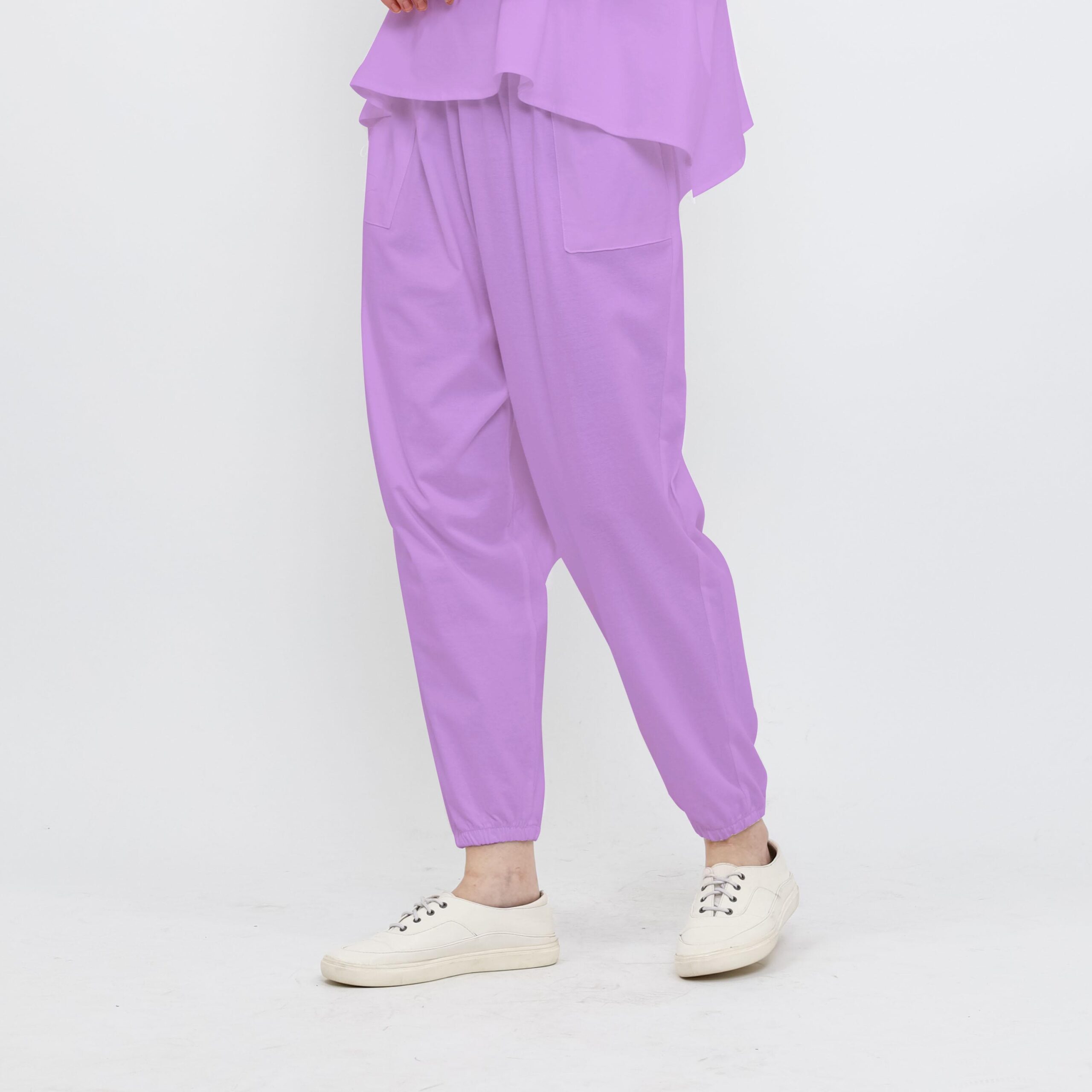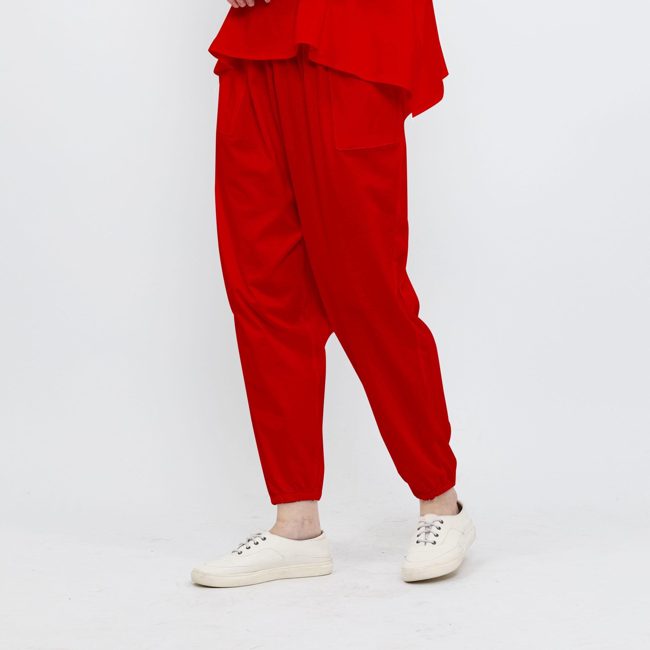 - Bagian pinggang dan pergelangan kaki menggunakan karet