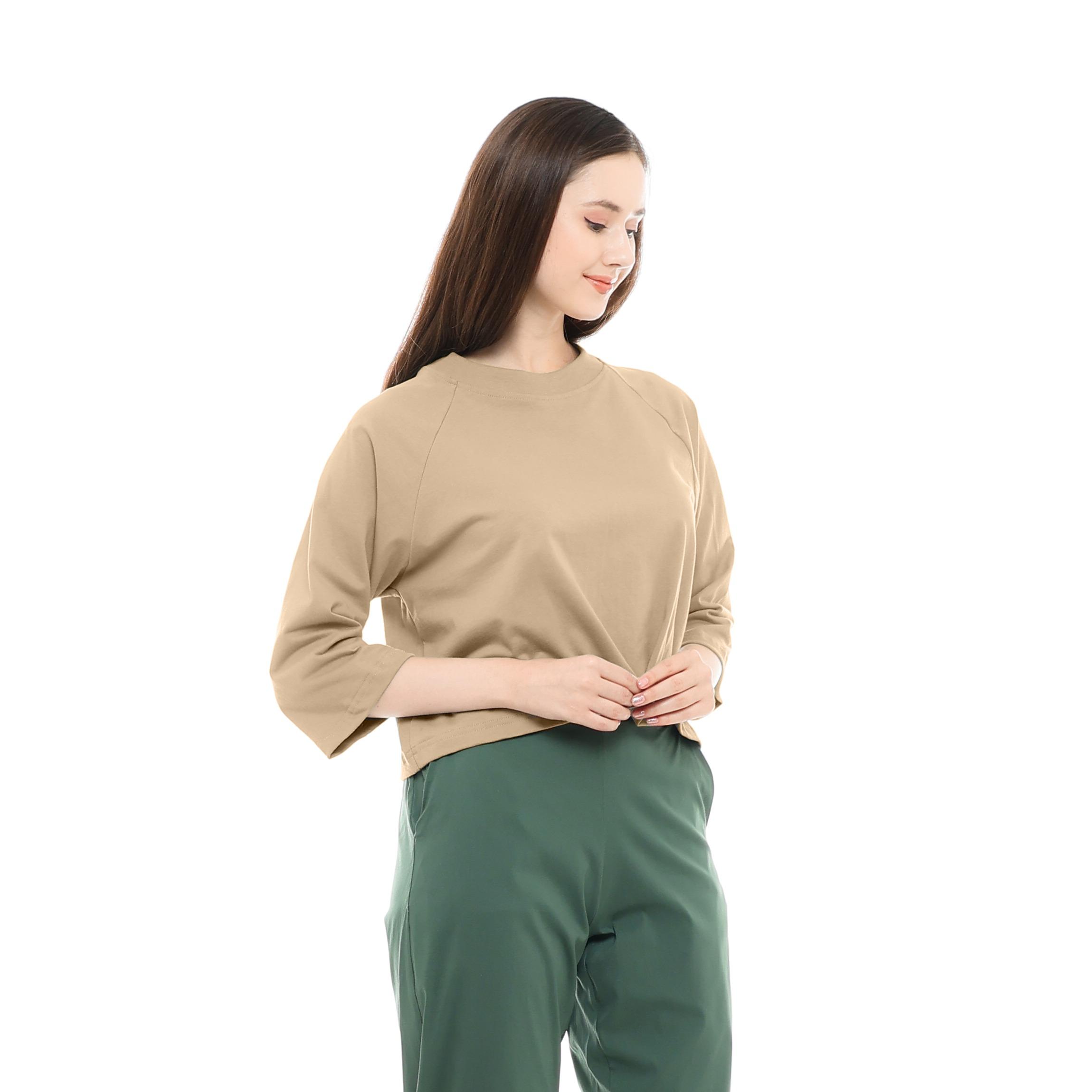 GENKA – Crop Top Jool Kaos Katun Cingkrang Lengan 3/4