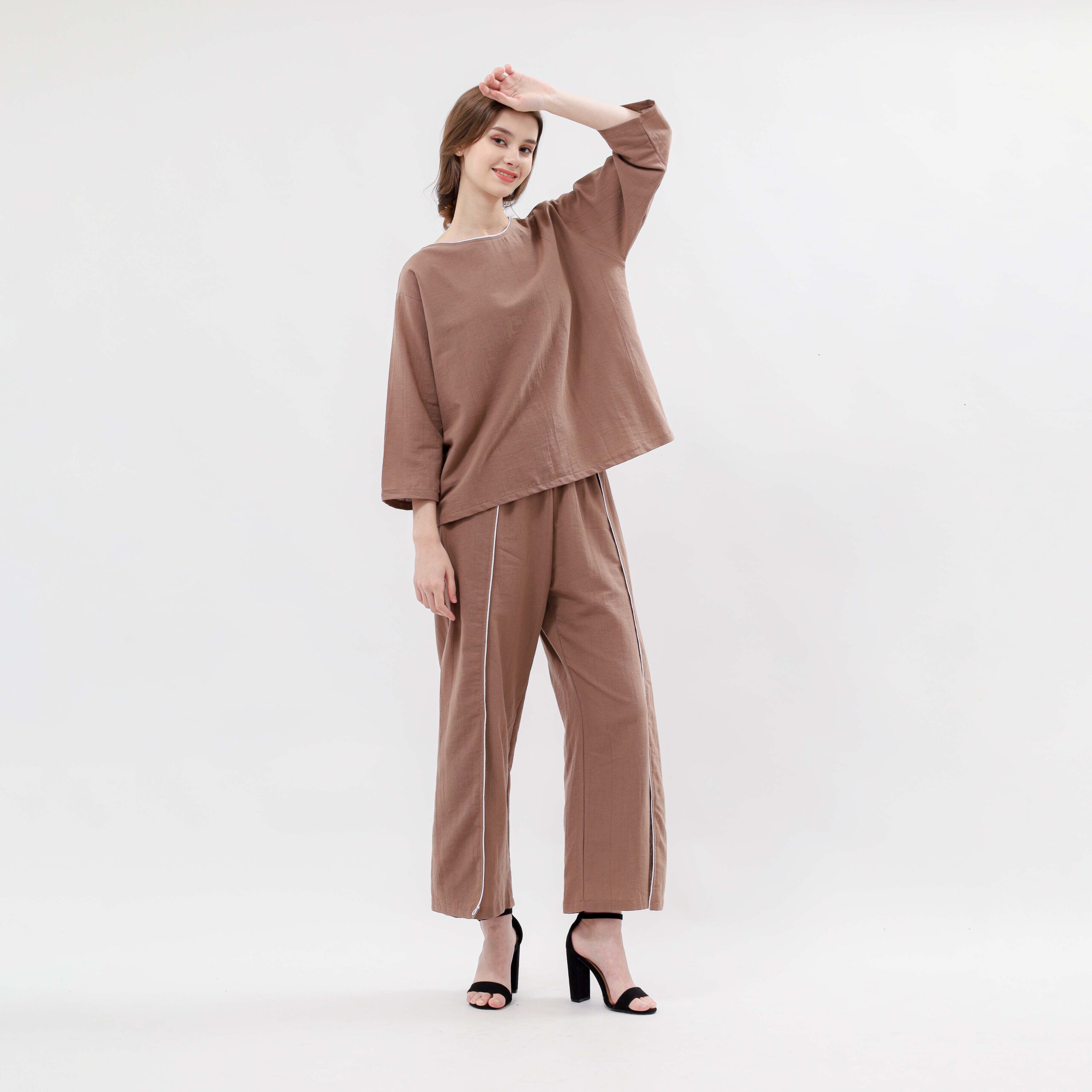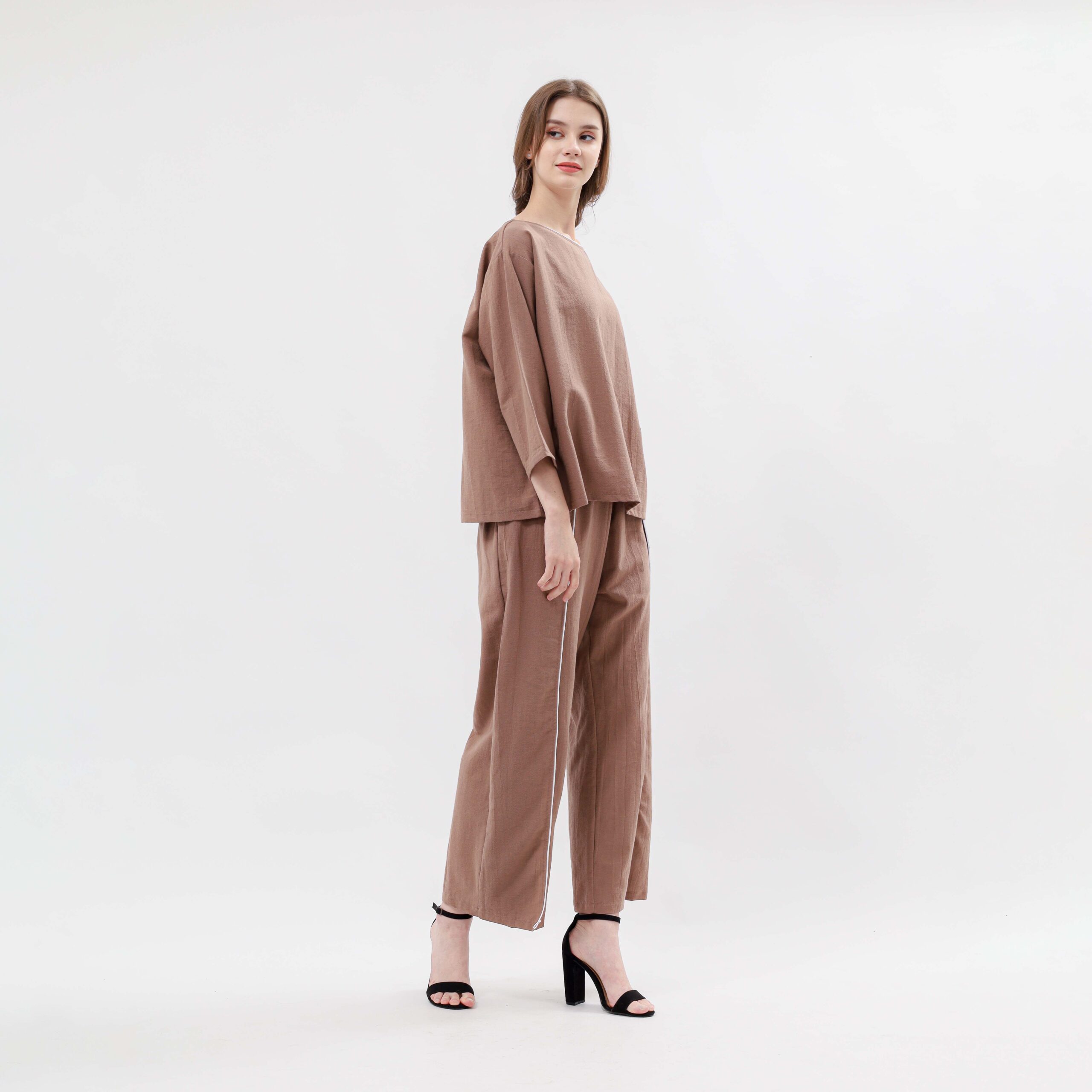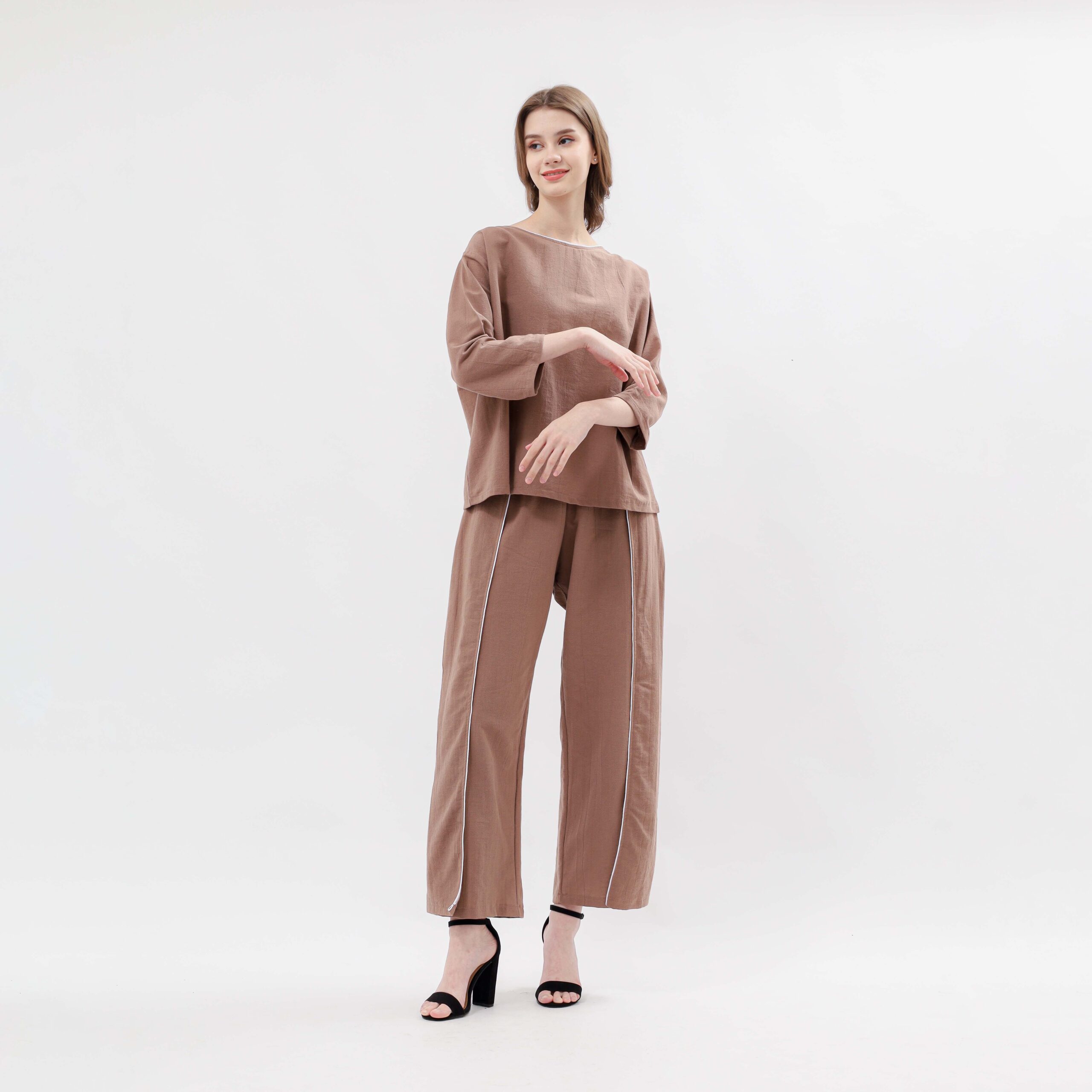GENKA – One Set Atasan dan Celana Panjang Strip Linen Gebby Set